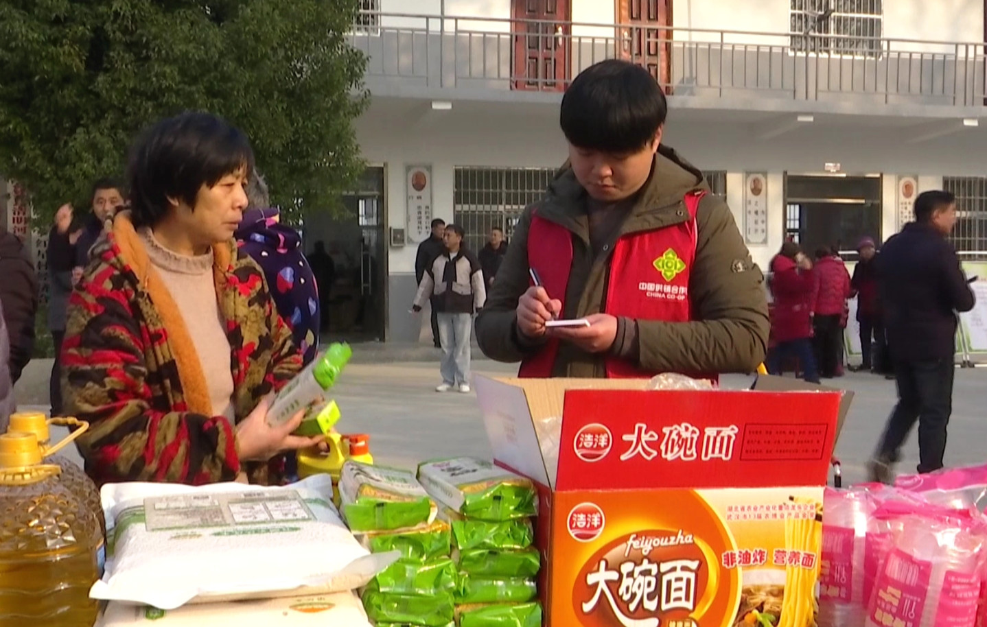 清明河乡供销社主任万付东:“前期我们进行了为期三天的村民入社宣传发动,组织了丰富的日用品下乡、农资下乡。现在村民的积极性很高,拿家里的瓶瓶罐罐、废旧物资、衣服鞋帽来兑换积分。今天我们现场收购废品5000件左右,兑换积分2700分,每一积分在社员证上登记为一块钱。以后在我们的供销社补助网平台上也可以买到商品,也可以在村级供销社服务中心买到称心的物资。”