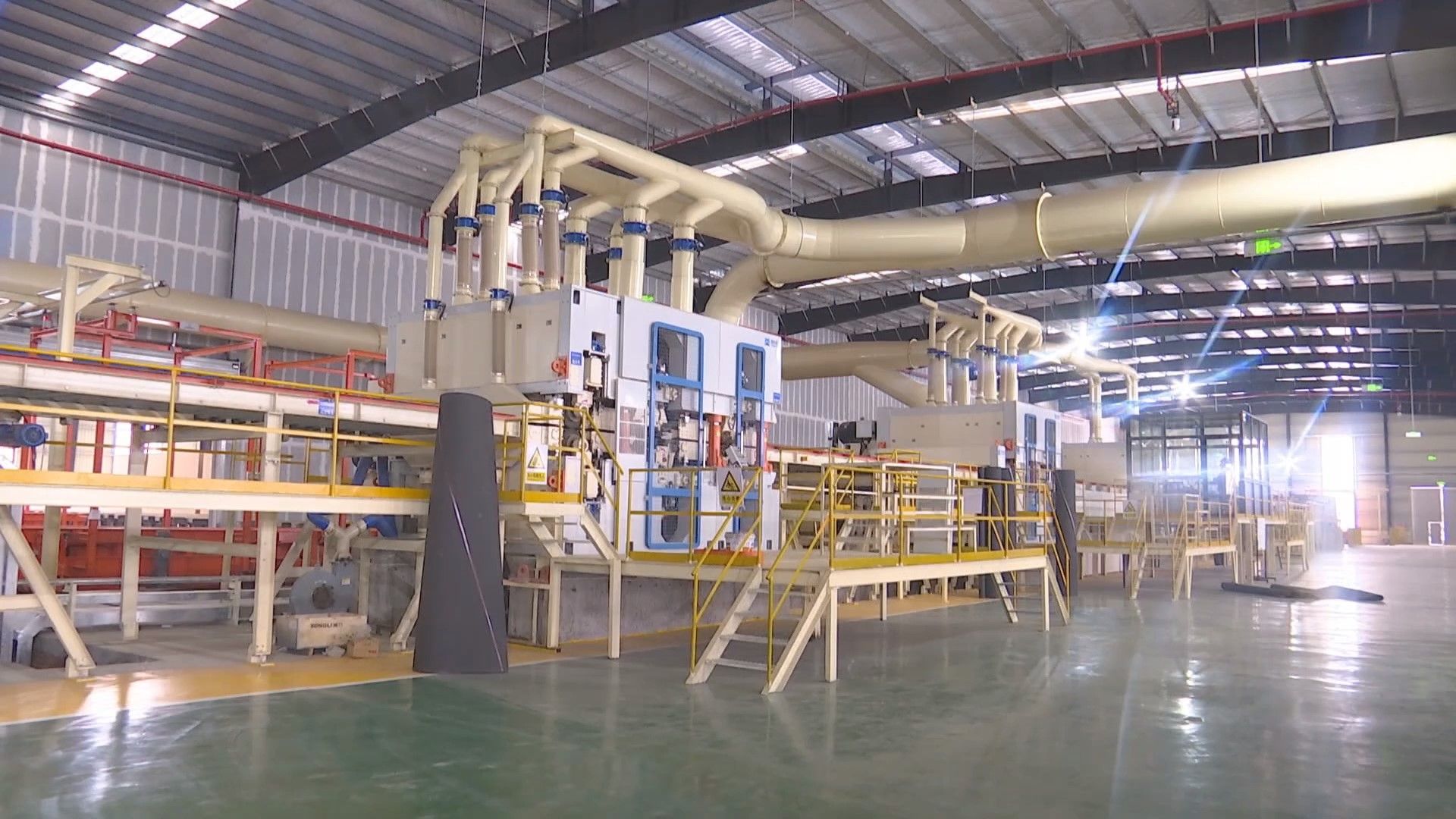 湖北东霖新材料有限公司生产的超强刨花板,属于人造板行业的高端产品,具有密度高、强度大、环保优等特点。整条生产线配备17台进口格鲁巴斯刨片机、意玛帕尔超级筛、自动施胶系统等,还有自动捡板机、自动打包机等国内外先进生产设备。智能化生产对人造板行业提升产业层次、增强发展活力,推动产业链延链、补链、强链起到重要的推动作用。