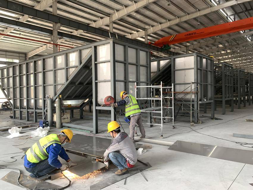 5月12日,在湖北互成自动化设备有限公司生产车间里,工人们正忙着为特斯拉赶制一条电泳涂装生产线。